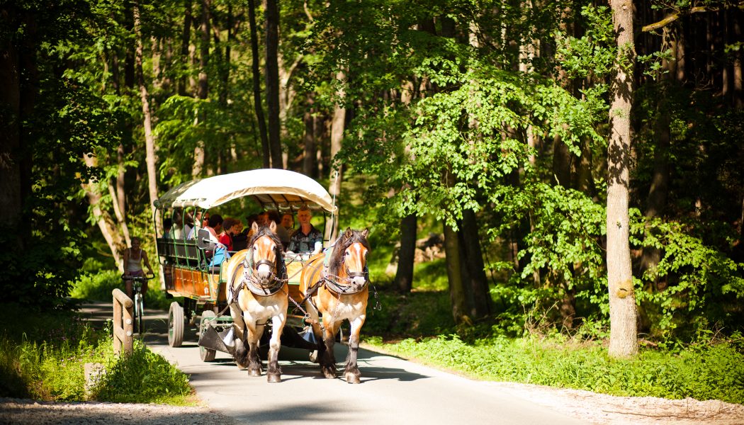 Im Café Robertsmühle im Eisenberger Mühltal genießen Sie traditionellen Thüringer Blechkuchen, bevor Sie mit einem der typischen Pferdekremser zur Unterkunft, dem Hotel & Restaurant „Zur Kanone“ durch das idyllische Mühltal fahren.