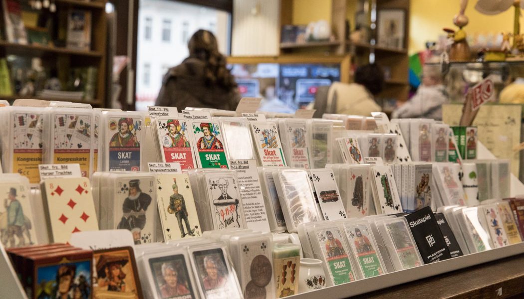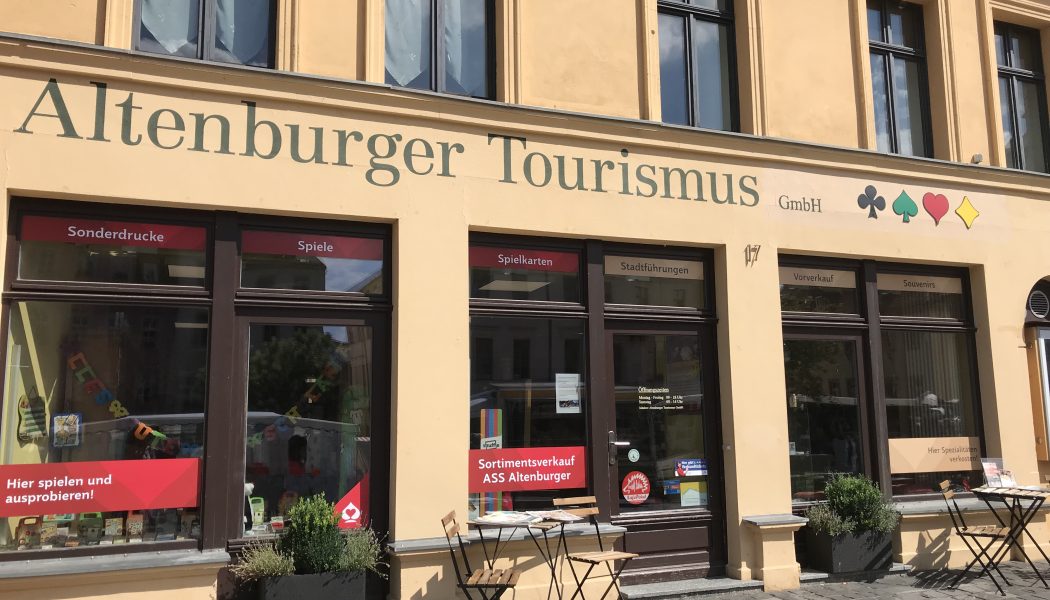 Als die Altenburger Tourismus GmbH 1994 gegründet wurde, konnte man in der Spielkartenstadt Altenburg keine Spielkarten kaufen. So entstand die Idee des Spielkartenladens am Markt. Heute stöbert man unter unzähligen Spielkartensorten, antiquarischen Spielkarten, Sondereditionen… Dazwischen locken regionale Spezialitäten – alles Altenburger Originale. Der liebevoll mit alten Möbeln eingerichtete Laden ist ein Muss für Spielefans und gleichzeitig das kulinarische Schaufenster der Region. Hier findet man Altenburger Ziegenkäse, Biere, Weine, Liköre, Senf, Honig, Wurst und Kunsthandwerk…… Oft sind Produzenten der Region zu Gast. Stadtführungen starten hier und enden mit einer Verkostung. Das Schönste: vor dem Laden in der Sonne sitzen und den Markt genießen.