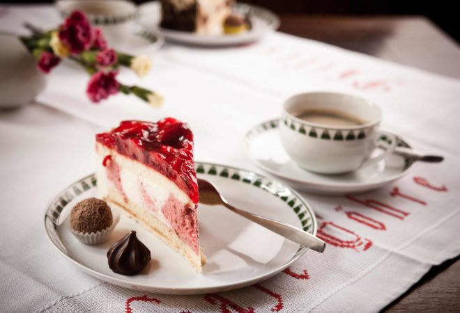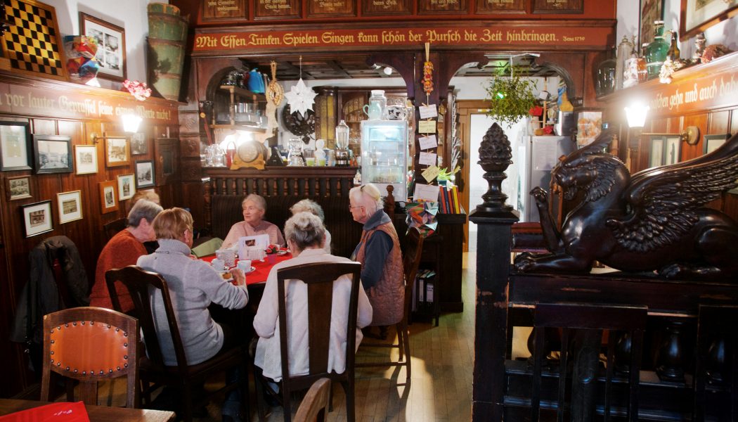 Das Besondere dieses Museumscafés offenbart sich nicht nur in der wertvollen Ausstattung mit holzvertäfelten Wänden, einer bemalten Kassettendecke und einem mit Schnitzereien verzierten Balken. Vor allem die Speise- und Getränkekarte schafft auf wunderbare Weise eine Symbiose zwischen kulinarischen Schätzen und Episoden aus der Stadtgeschichte. In kleinen Booklets erfährt man als Gast so manche Begebenheit über Goethe, Schaeffer oder Weigel.
