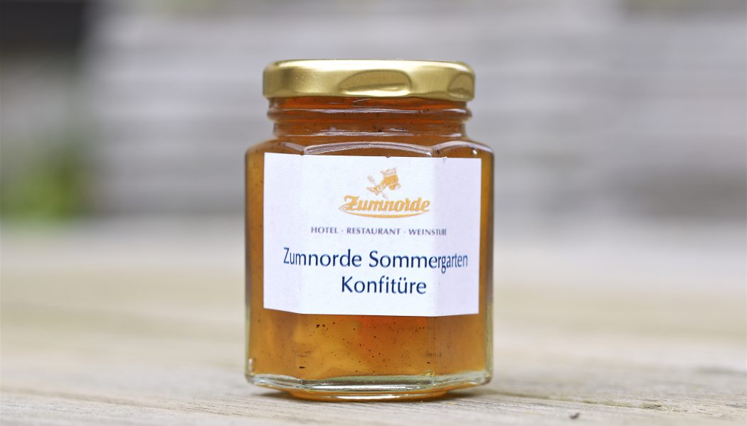 Mit folgenden hausgemachten Produkte vom Hotel Zumnorde am Anger holt man sich ein Stück Rafinesse und Heimatliebe in die eigene Küche. Hier werden Fischsalz, Fleischsalz, saisonal variierende, fruchtig-herzhafte Chutneys und leckere Konfitüre hausgemacht. Dafür werden frische, saisonale Zutaten (mal heimisch, mal exotisch) verwendet. Ein Mischung aus 2 großen Konfitüren und 3 kleinen Salzen, Chutneys oder Senfsorten gibt es auch als hübsche Geschenkbox „Süß und Salzig“ zum Verschenken.